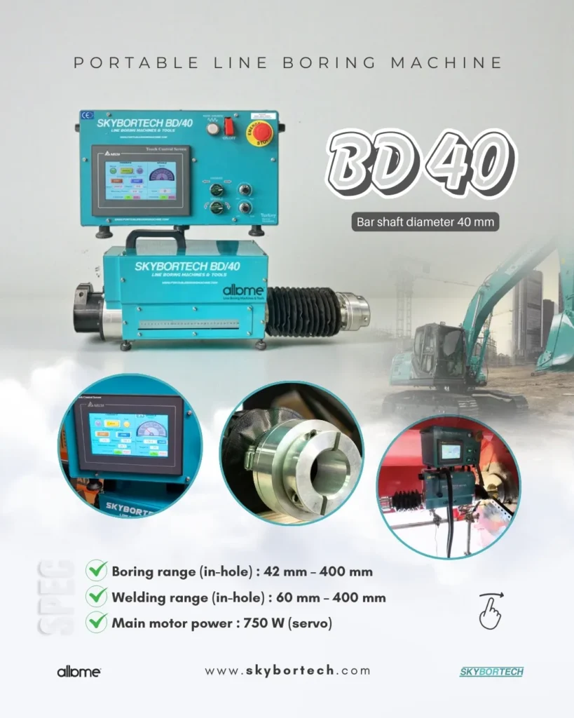 Line boring machines are used in various industries including construction, mining, maritime, and agriculture. They are commonly used for maintenance of heavy equipment.